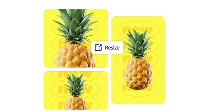 ‘대량으로 만들기’로 여러 버전의 디자인을 만들거나, ‘크기 조정’으로 모든 소셜 채널에 맞게 콘텐츠를 빠르게 조정할 수 있습니다.