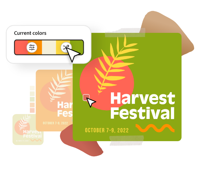 Adobe Express 프로젝트에 선별된 색상 조합을 추가하고 한 번의 클릭으로 색상을 변경해 보세요. Adobe Color 기능이 통합되어 더욱 다채로운 색상 테마를 이용할 수 있습니다.