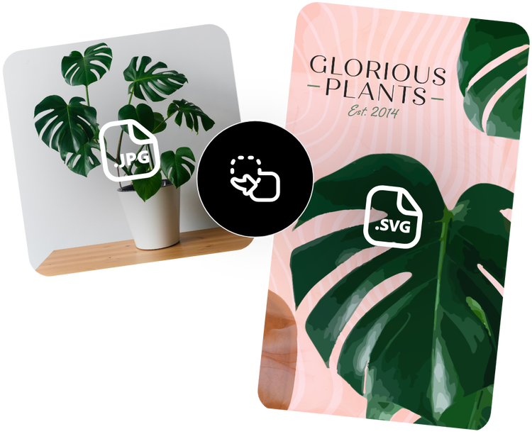 스케일러블 벡터 그래픽(SVG)은 웹 친화적인 벡터 파일 형식입니다. JPG는 픽셀로 이루어진 래스터 파일입니다. SVG 같은 벡터 그래픽은 크기를 어떻게 바꾸더라도 해상도를 유지합니다. JPG를 벡터로 변환해 로고, 인포그래픽, 일러스트레이션 등 용도로 사용하세요.