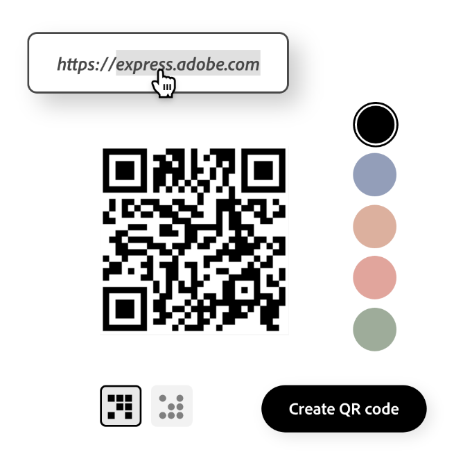 탭 몇 번으로 맞춤형 QR코드를 만드세요. 모바일 기기 또는 컴퓨터와 브라우저만 있으면 특별한 소프트웨어나 앱을 다운로드하지 않아도 Adobe Express QR 제작기를 사용할 수 있습니다. 설정이 매우 간편하여 QR 코드 전문가가 될 수 있습니다. 색상과 스타일을 맞춤화한 다음 무료 Adobe Express 템플릿에서 QR코드 이미지를 사용하세요.