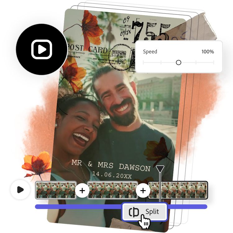 Adobe Express의 강력한 편집 도구를 사용하여 동영상을 여러 부분으로 분할하고 원하지 않는 장면을 제거할 수 있습니다. 경험 없이도 몇 분 만에 클립, 하이라이트 등을 만들 수 있습니다.