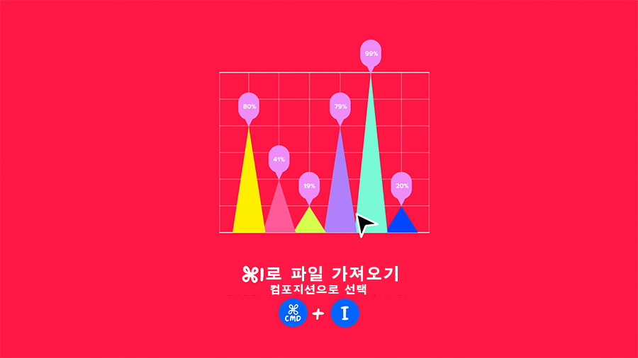Command+I를 눌러 모든 레이어 크기를 유지하면서 파일을 컴포지션으로 가져옵니다.