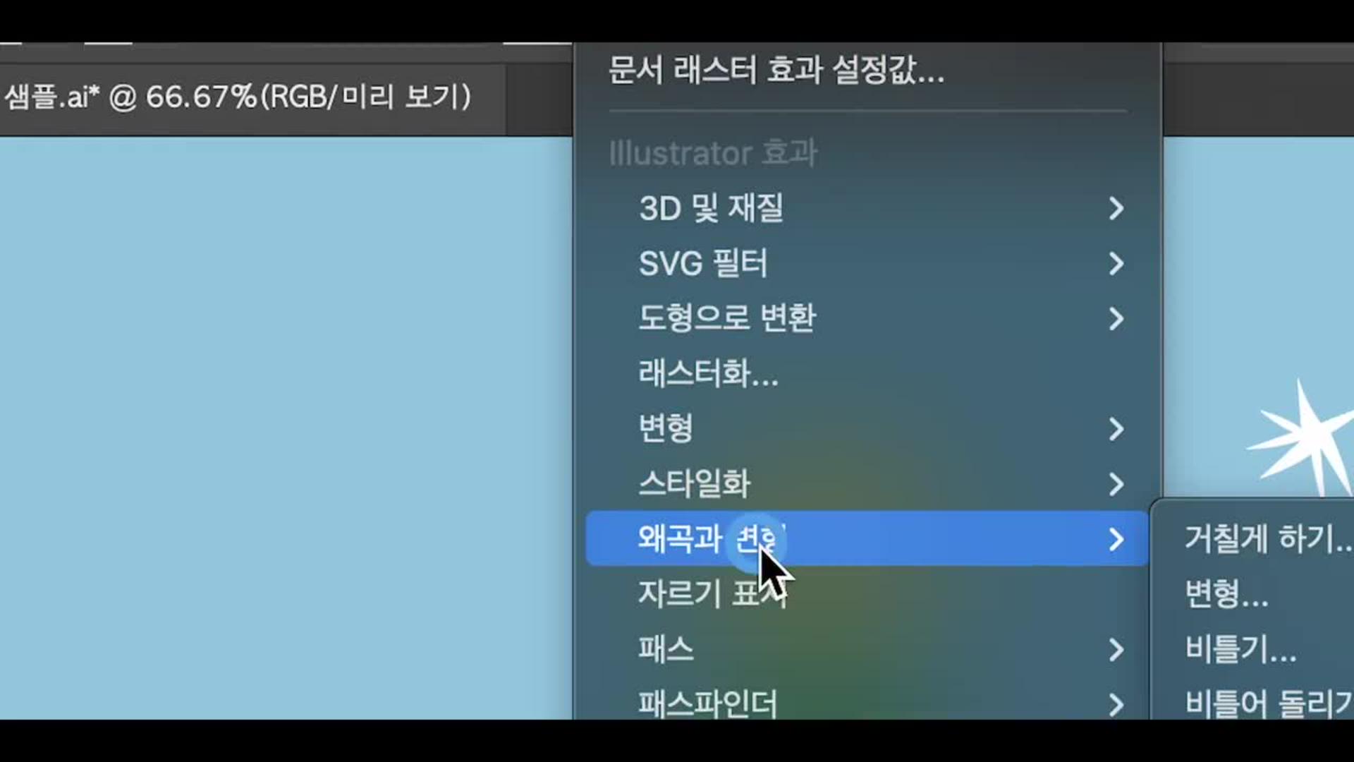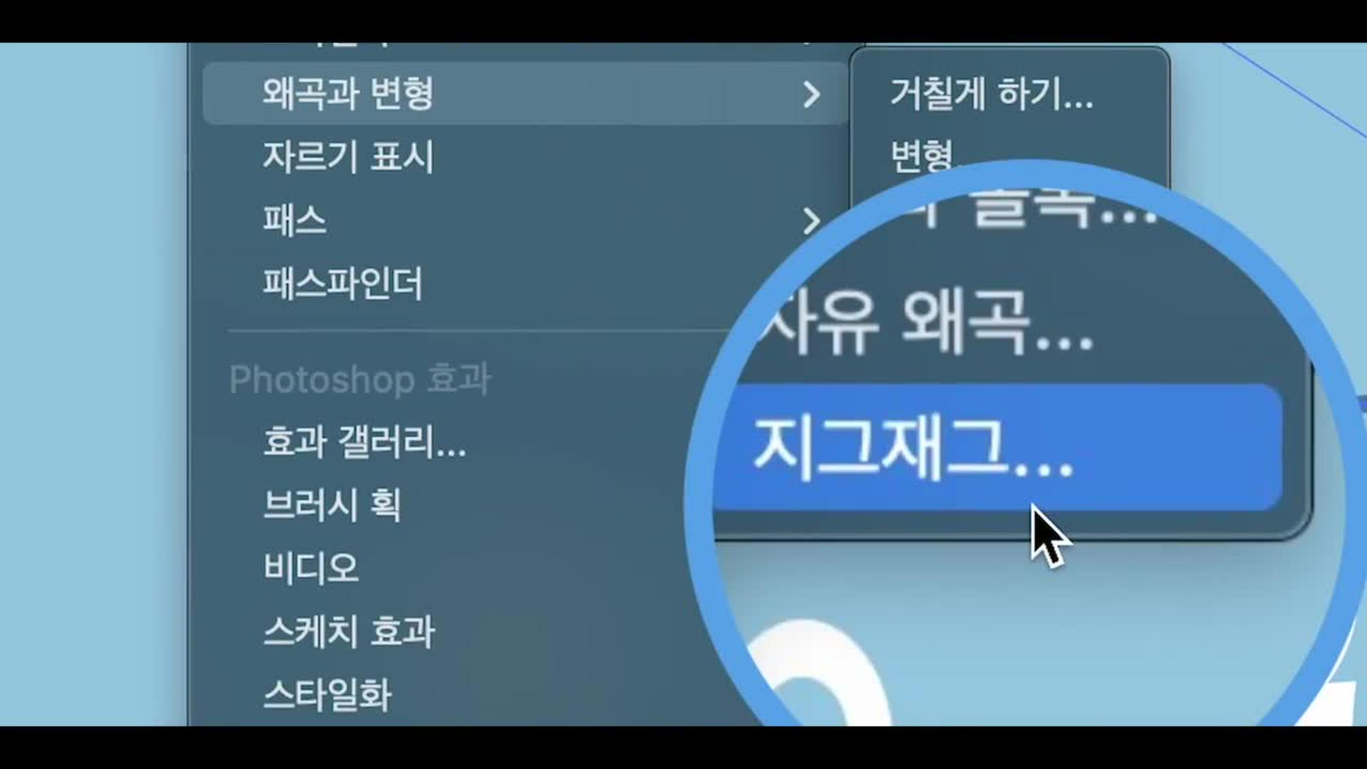상단 메뉴 [효과] > [왜곡과 변형] > [지그재그]를 선택합니다.