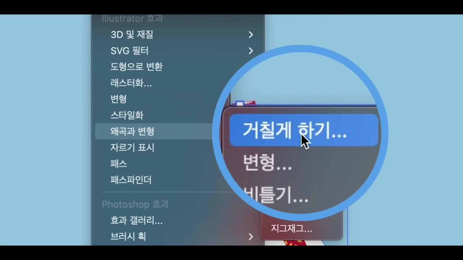 [효과] > [왜곡과 변형] >[거칠게 하기] 를 클릭합니다.