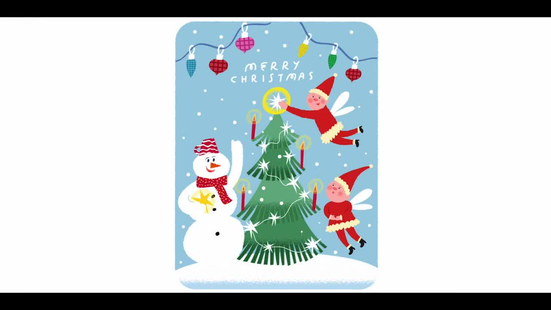 선택 도구로 완성된 트리, 오너먼트, 눈사람 개체들의 위치를 자유롭게 배치하고 레이어 수정, 조절하여 아트워크를 최종 완성합니다.