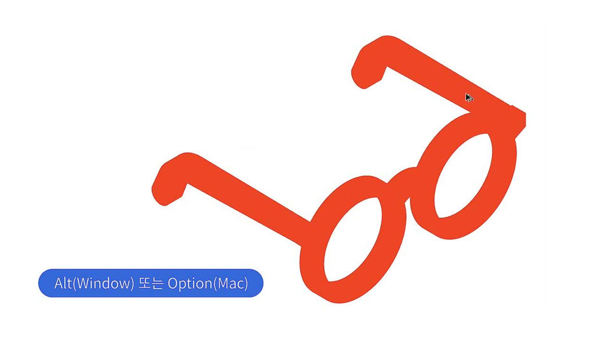 키보드에서 Alt(Window) 또는 Option(Mac)을 누른 상태로 클릭 후 드래그하여 안경다리를 복제하고 이동하여 완전한 안경 모양을 만듭니다.