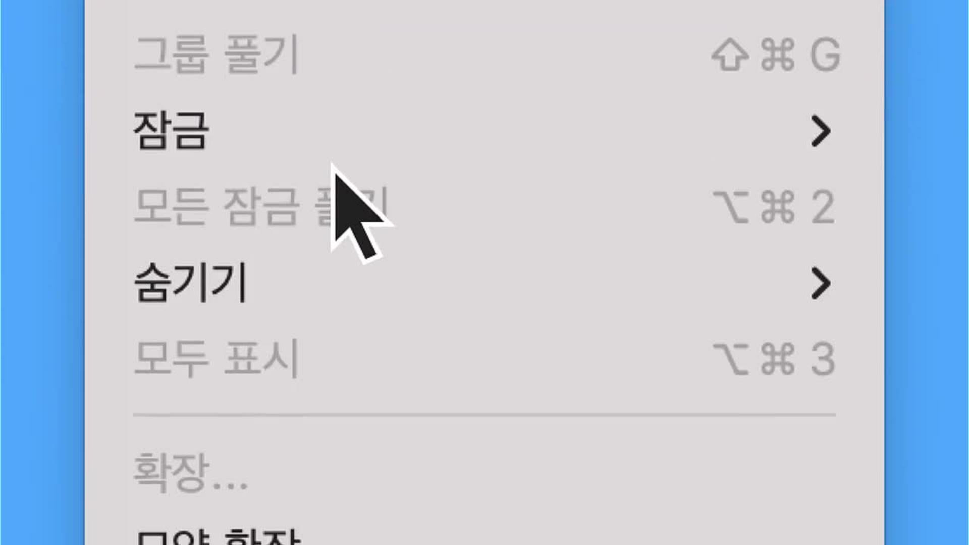 선택 도구로 안경의 프론트를 선택한 후 우클릭하여 정돈> 맨 앞으로 가져오기를 클릭하여 레이어의 위치를 정돈합니다.