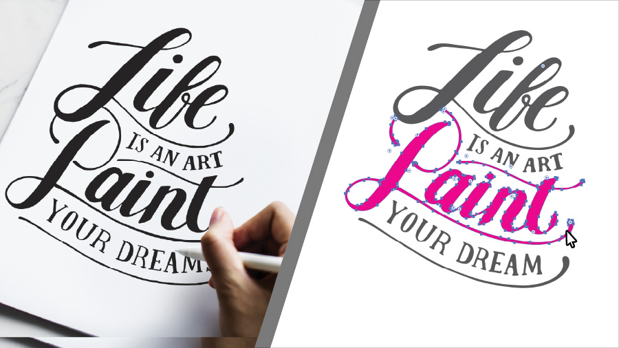 손글씨는 손으로 타이포그래피를 만드는 아트로, 보통 종이에 직접 그리거나 Illustrator에서 디지털 방식으로 만들 수 있습니다. 잘 알려진 손글씨로는 캘리그래피가 있습니다. 캘리그래피 아티스트는 브러쉬와 같은 다양한 도구를 사용하여 작품을 완성합니다. 종이에 그린 손글씨를 Illustrator로 가져와 디지털 형식으로 창작 프로세스를 이어갈 수 있습니다.