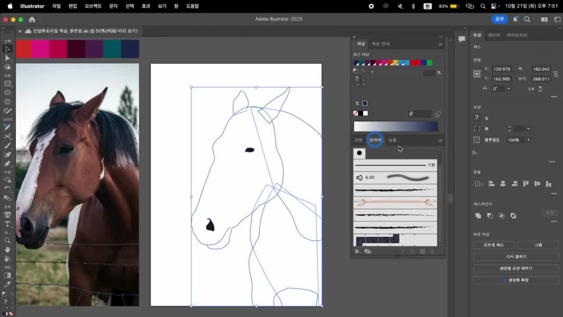 페인트 브러시를 활용한 디테일 및 배경 완성: [페인트 브러시] 툴의 획 두께와 색상을 실시간으로 변경하며 말의 역동적인 움직임과 배경의 시각적 깊이감을 표현하는 노하우를 확인합니다.