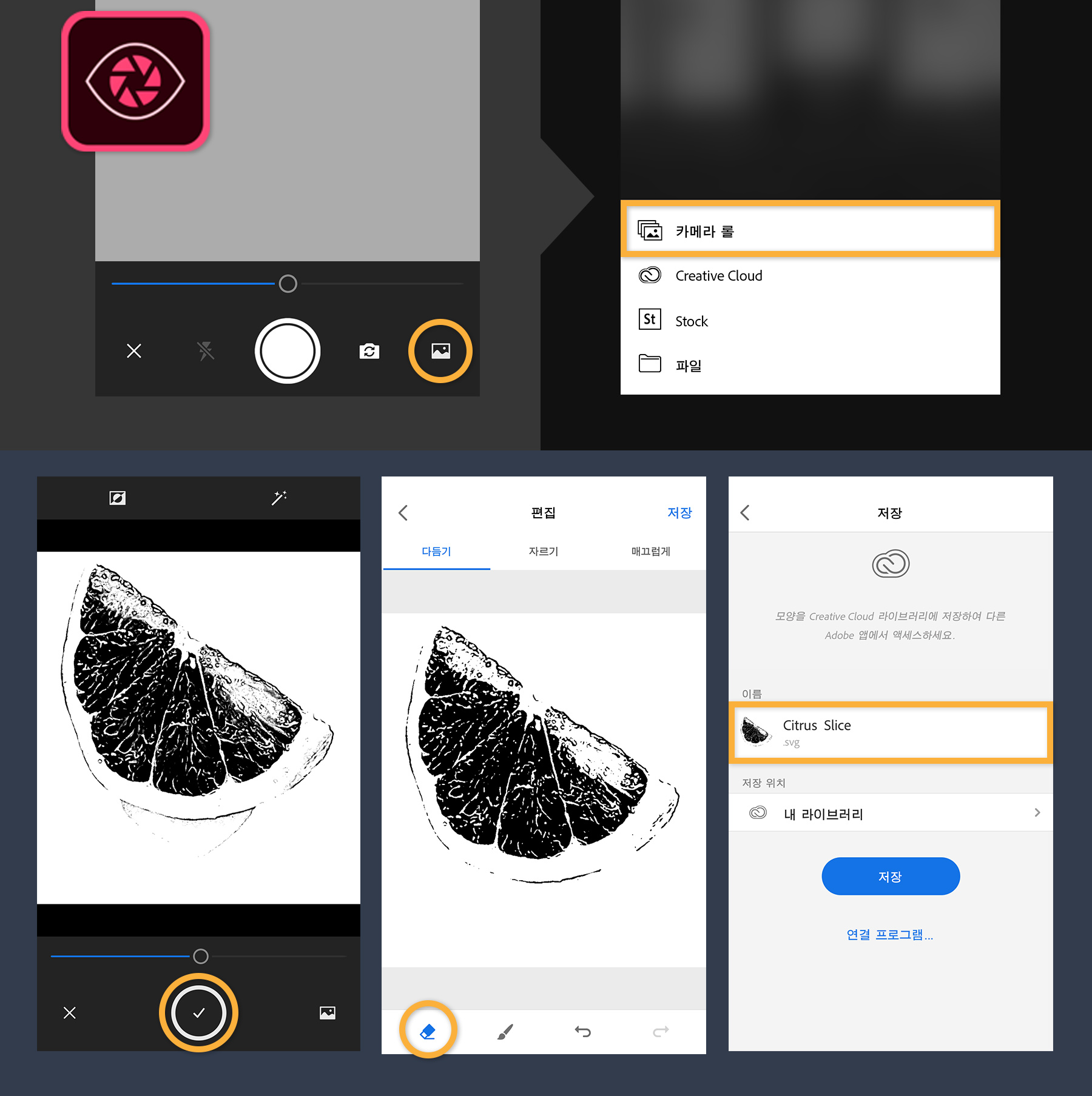 먼저 모바일 디바이스에서 Adobe Capture를 실행합니다.