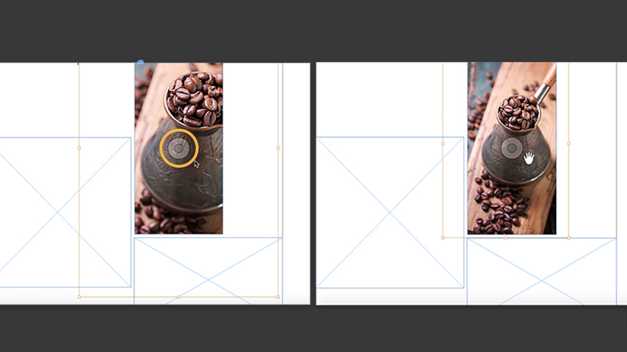 아트웍의 위치를 변경하려면 내용 잡기 도구를 프레임 안에서 원하는 방향으로 드래그합니다.