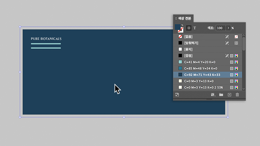 색상의 일관성을 유지하고 재사용하기 위해 색상 견본 패널에 브랜드 색상을 저장하세요.