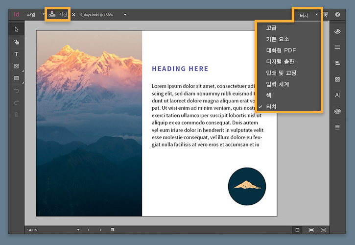 InDesign의 터치 작업 영역을 사용하여 어디에서나 레이아웃을 구성하는 방법을 살펴보세요.