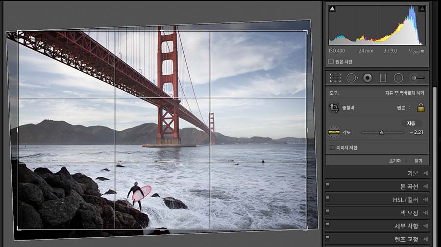 Adobe Photoshop Lightroom Classic에서 기울어진 사진을 똑바르게 하고 특정 크기로 잘라 완벽한 구도의 사진을 만드는 방법을 살펴보세요.