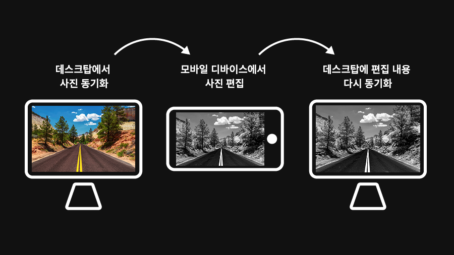 참고: 모든 디바이스에서 사진을 동기화하려면 Creative Cloud 멤버십 또는 체험판이 필요합니다.