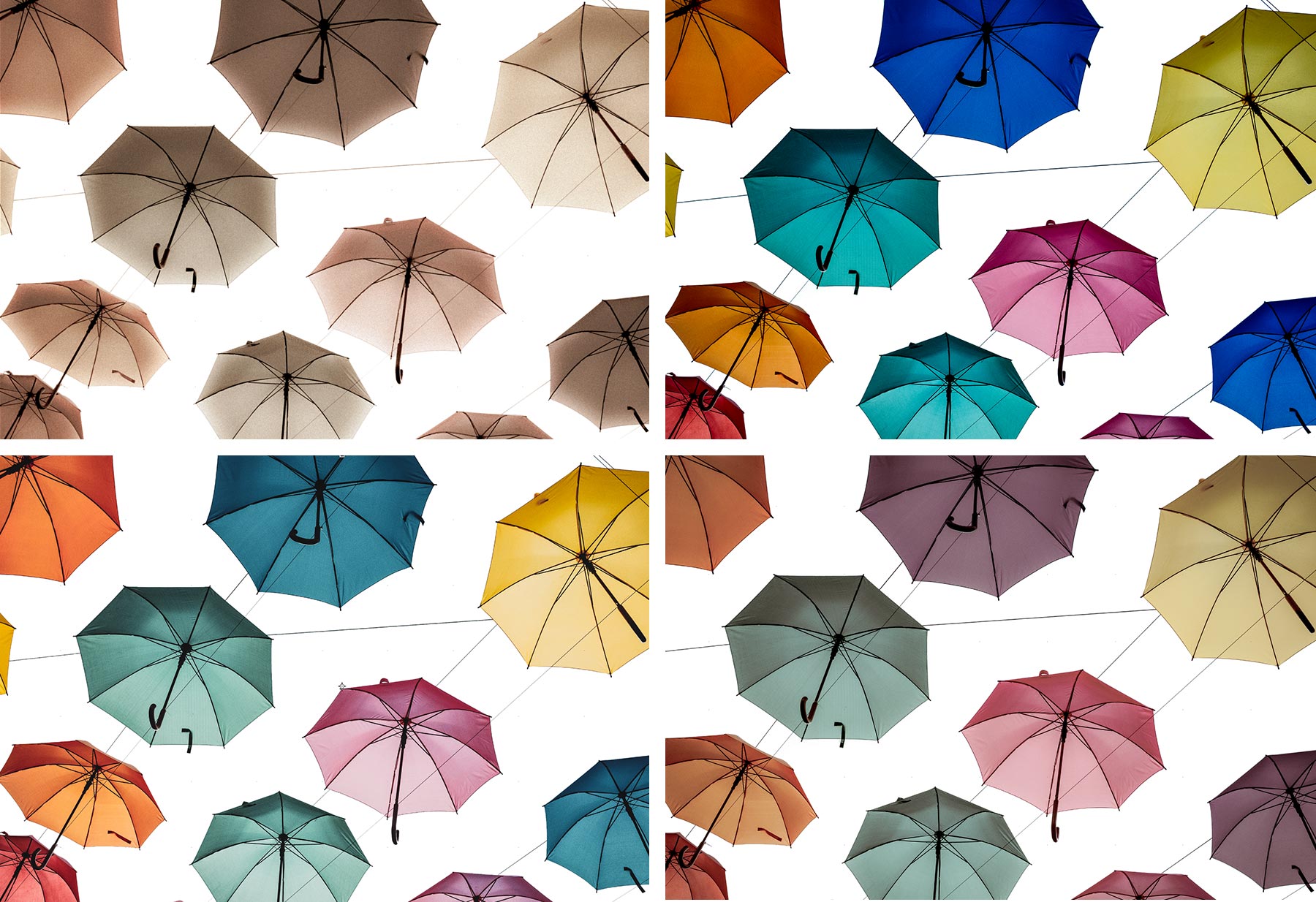 먼저 파란 하늘을 제거하여 우산 영역을 분리했습니다. 자동 선택 툴을 사용하여 하늘 영역을 클릭합니다. Shift를 누른 상태에서 하늘이 모두 선택될 때까지 다른 영역을 클릭합니다. 샘플 크기, 허용치 등 다양한 설정을 조정하면 이 프로세스를 빠르게 완료할 수 있습니다. Alt/Option을 누른 상태에서 레이어 마스크 추가를 클릭하여 하늘을 숨깁니다.