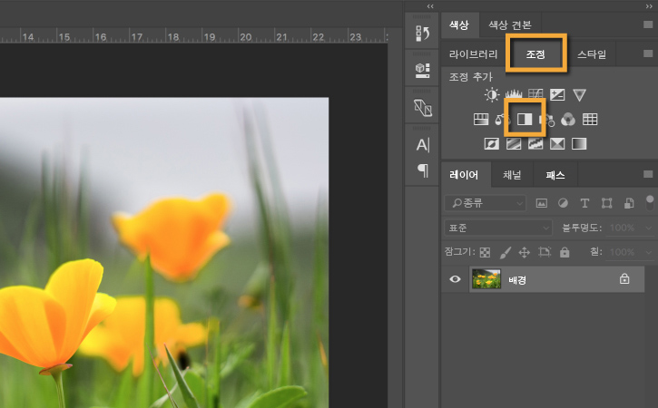 조정 패널 탭 을 클릭하거나 창 > 조정 을 선택하여 조정 패널을 연 다음 조정 패널에 있는 흑백 조정 아이콘 을 클릭합니다.