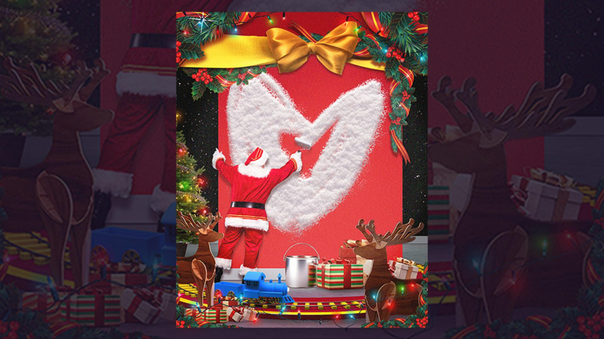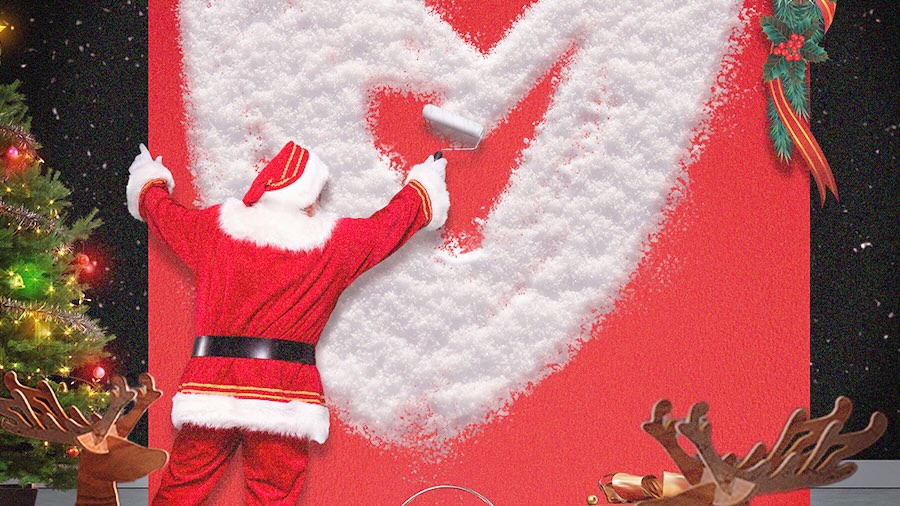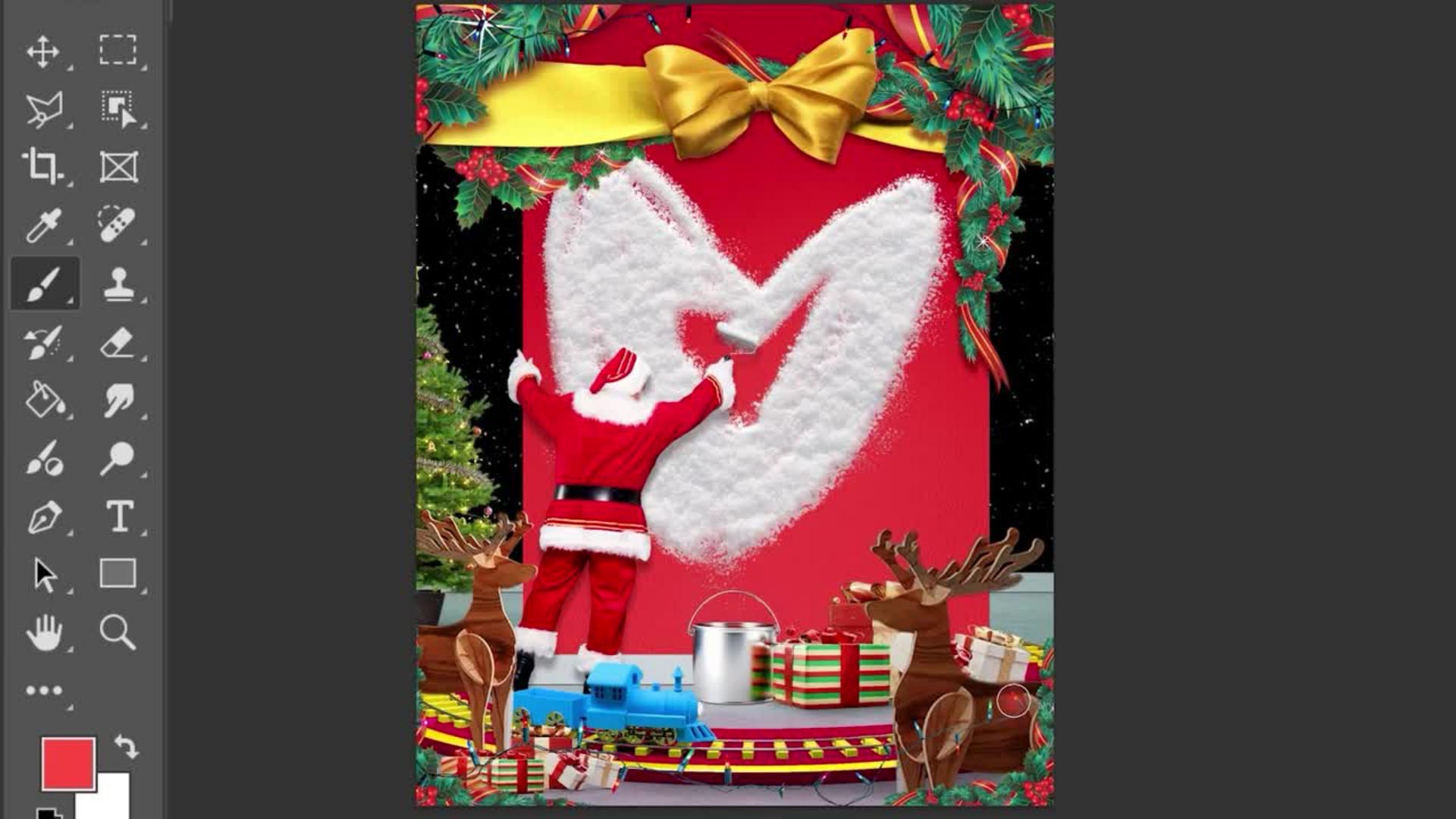 어도비 스톡에서 무료 이미지를 불러와 잘라 붙이고 주변을 꾸며 크리스마스 분위기를 더합니다.