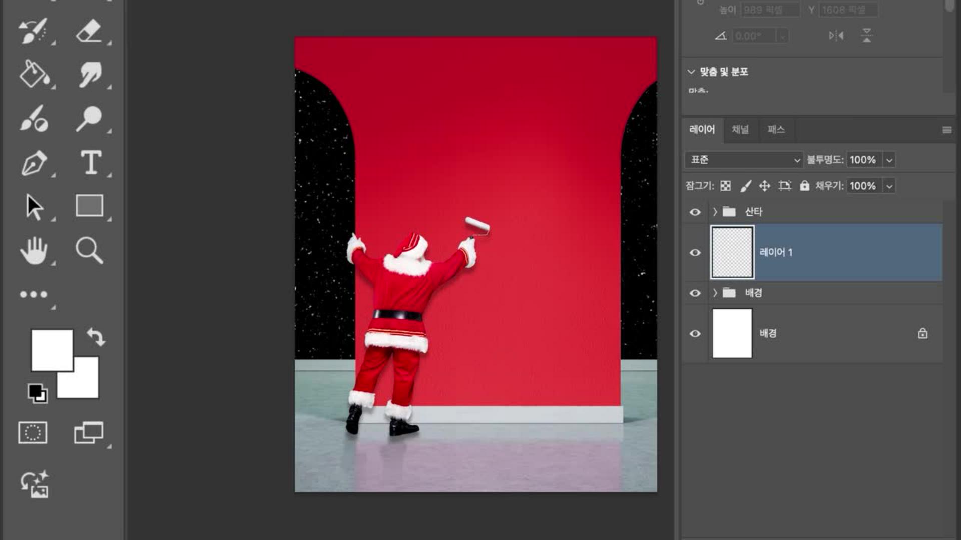 새 레이어를 만들고 산타 레이어 아래에 둡니다.