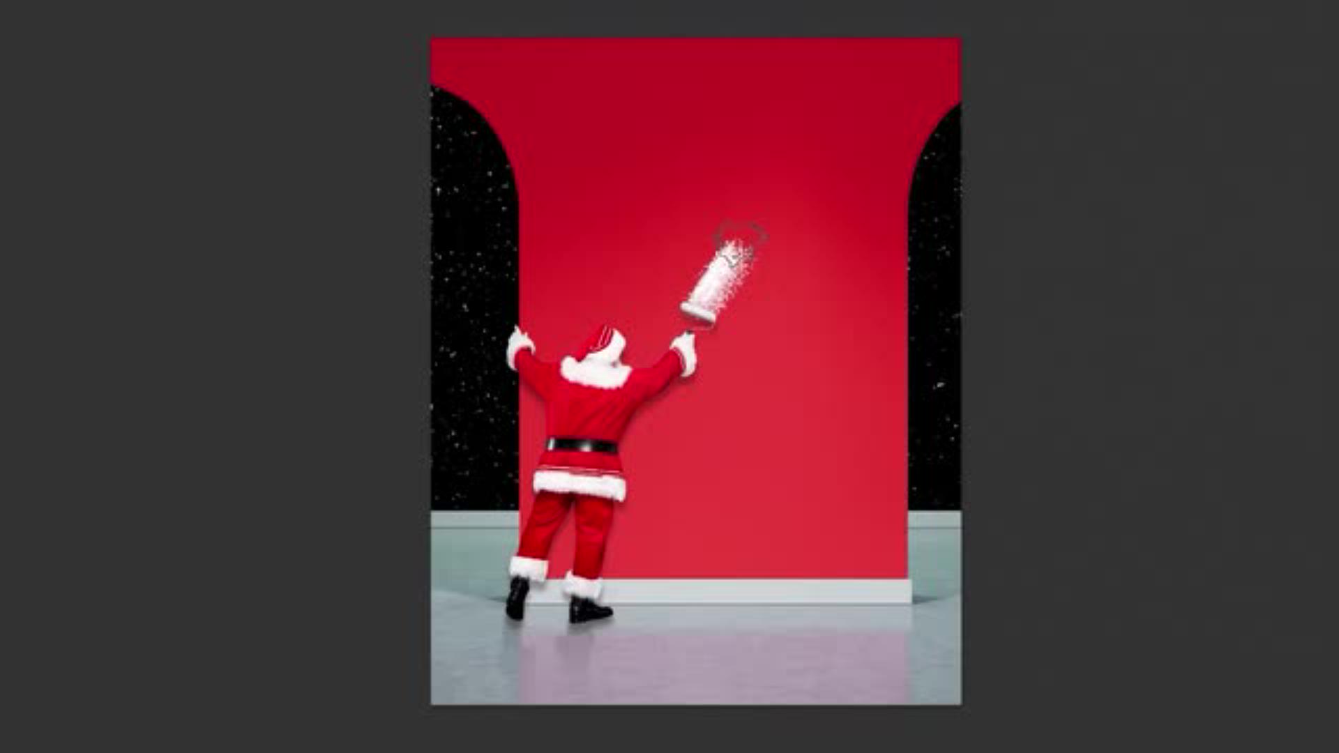 새 레이어를 추가해 바닥보다 어두운 색으로 채우고 산타 아래로 이동합니다.