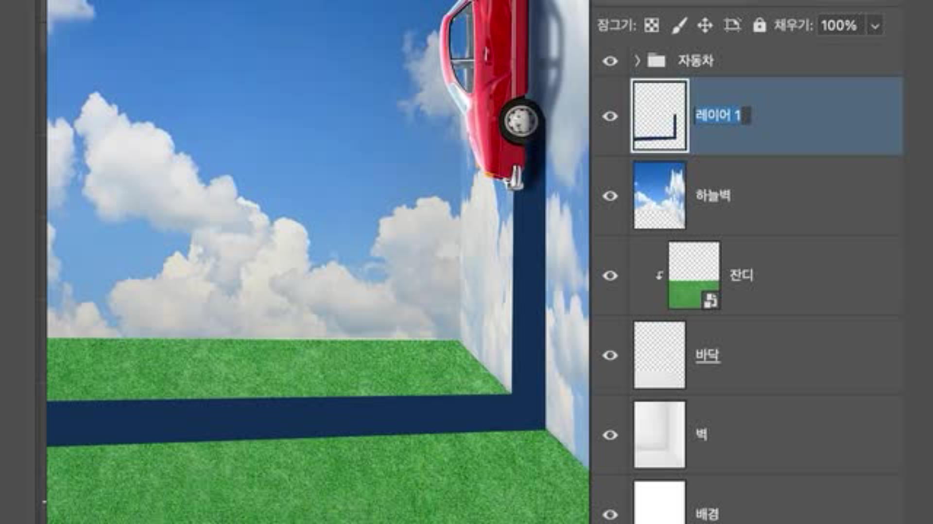 하늘이 벽이 된 레이어를 선택합니다.