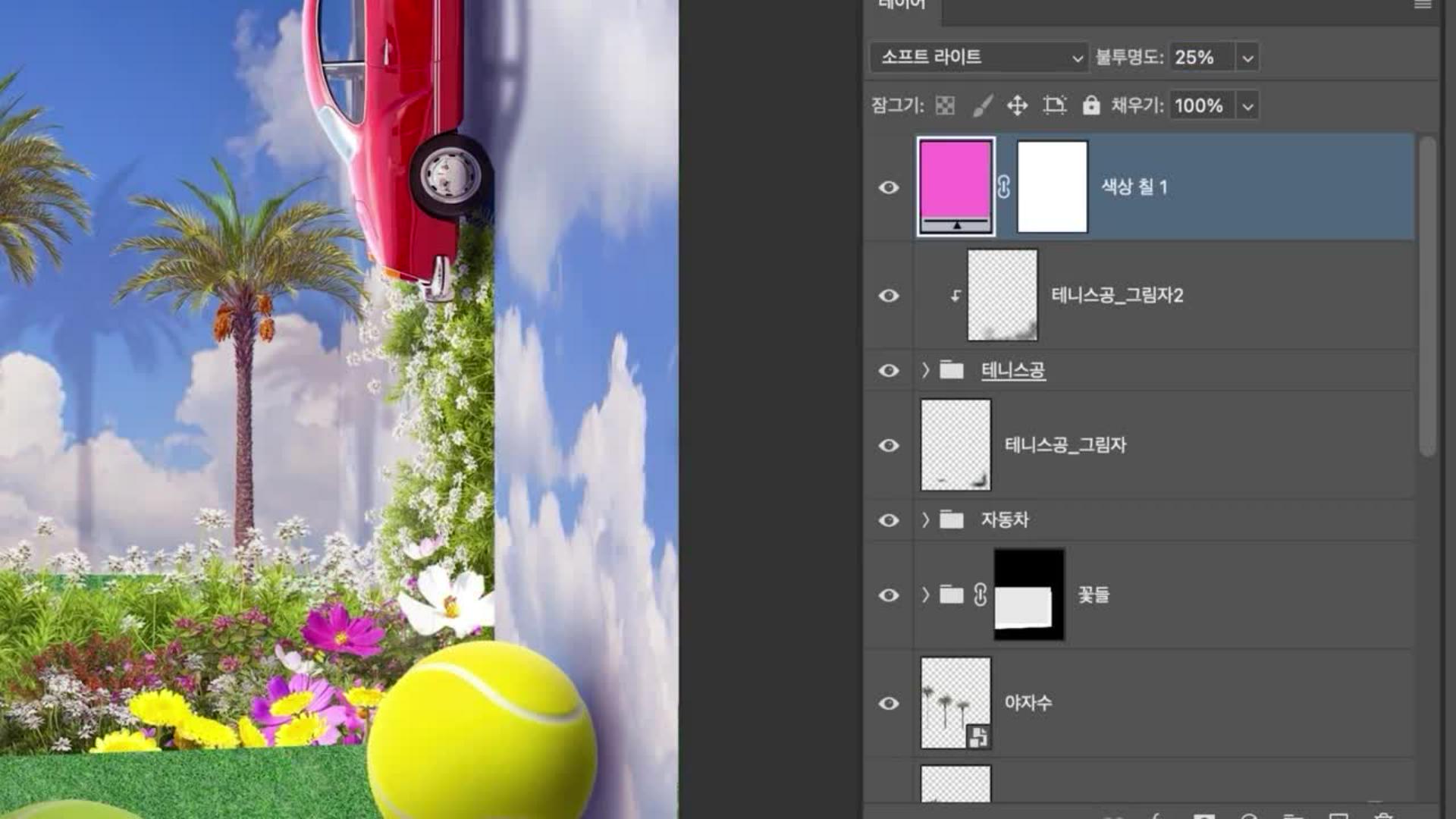 블렌딩 모드: 소프트라이트(Soft Light), 불투명도: 25%