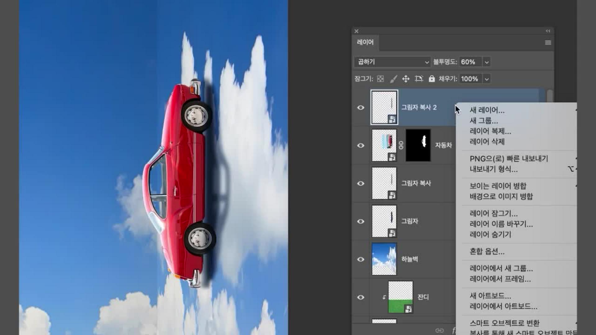 마스킹한 자동차 영역만 선택 후 새 레이어를 생성합니다.