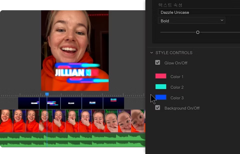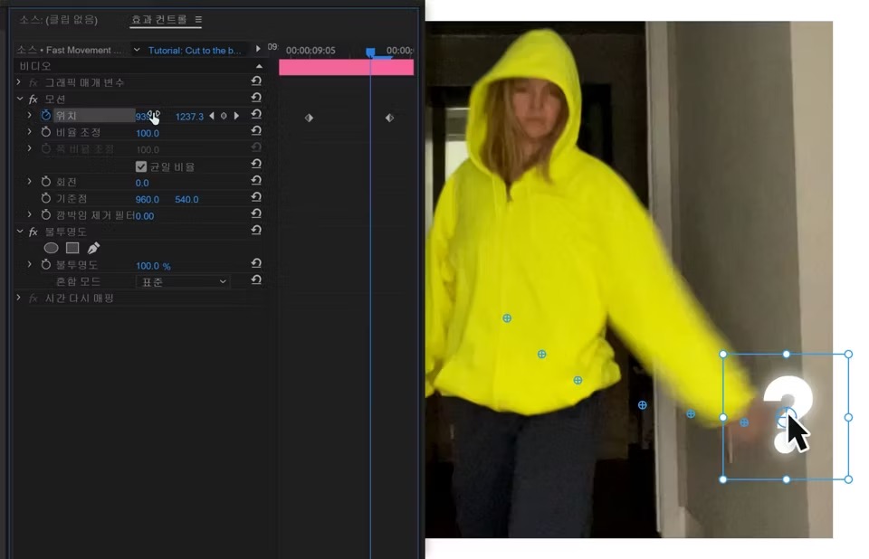 영상 속 움직임과 연계된 타이틀 애니메이션 효과를 추가해 보세요. 몇 개의 키프레임을 설정하는 것만으로 텍스트를 손으로 밀쳐내는 동작을 연출할 수 있습니다.