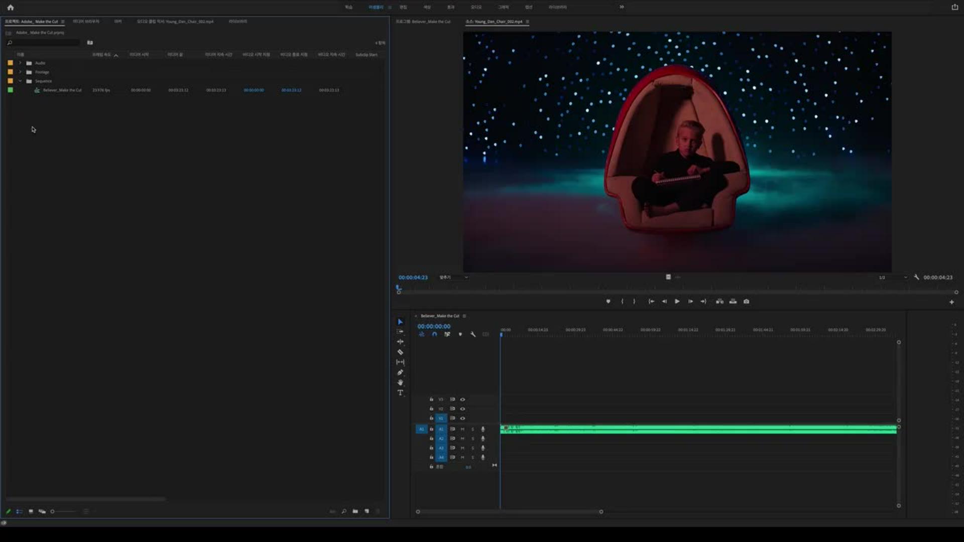 사용할 푸티지와 오디오에 익숙해집니다. 이 예제에서는 다운로드 가능한 아카이브에서 사전 로딩된 시퀀스가 제공됩니다.