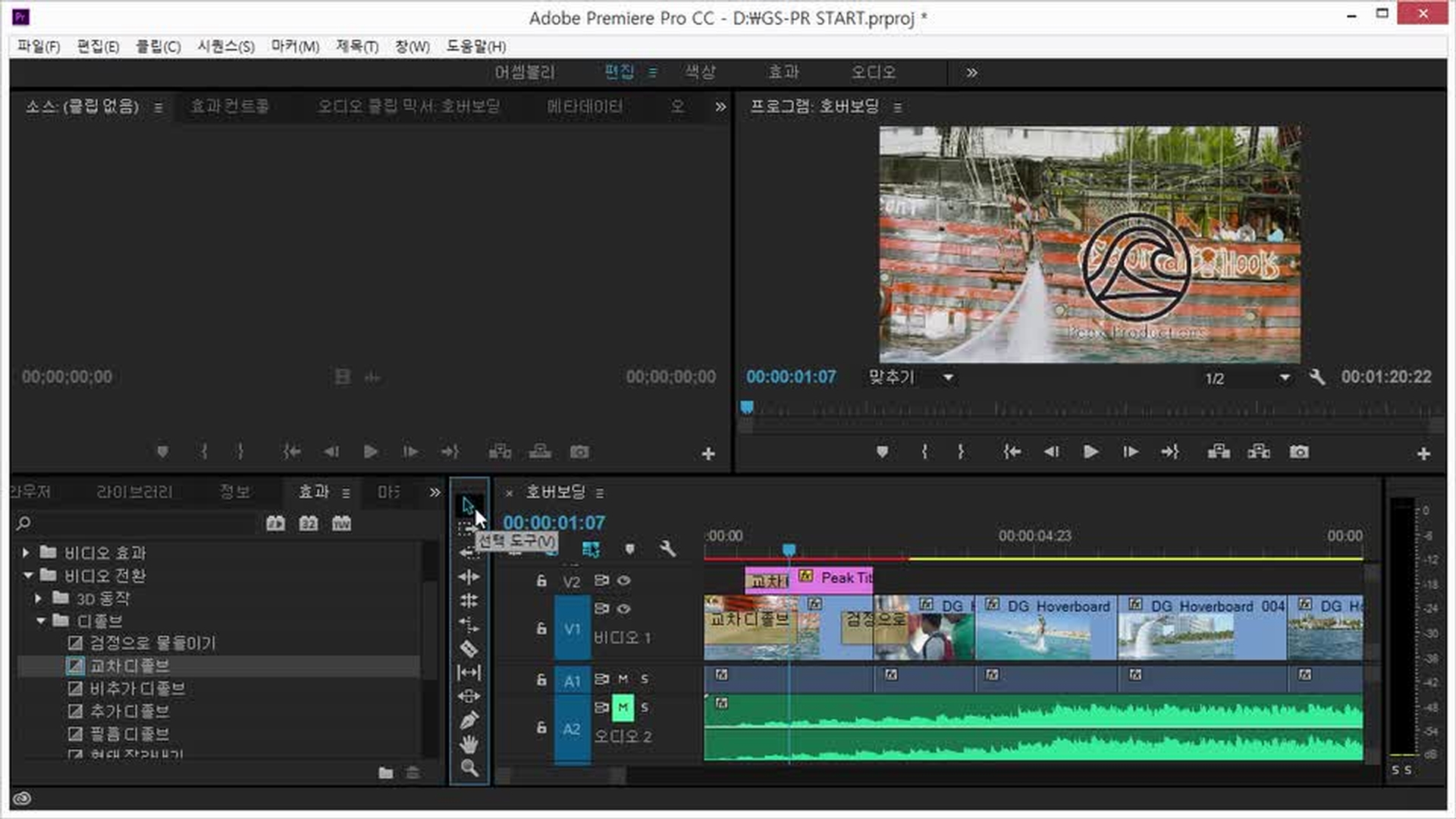 타임라인에서 클립을 자르고 이동하며 확장하기 위한 기법을 살펴보고 특수 효과를 손쉽게 적용하며 Lumetri 색상 패널을 사용하여 색상을 조정해 봅니다.