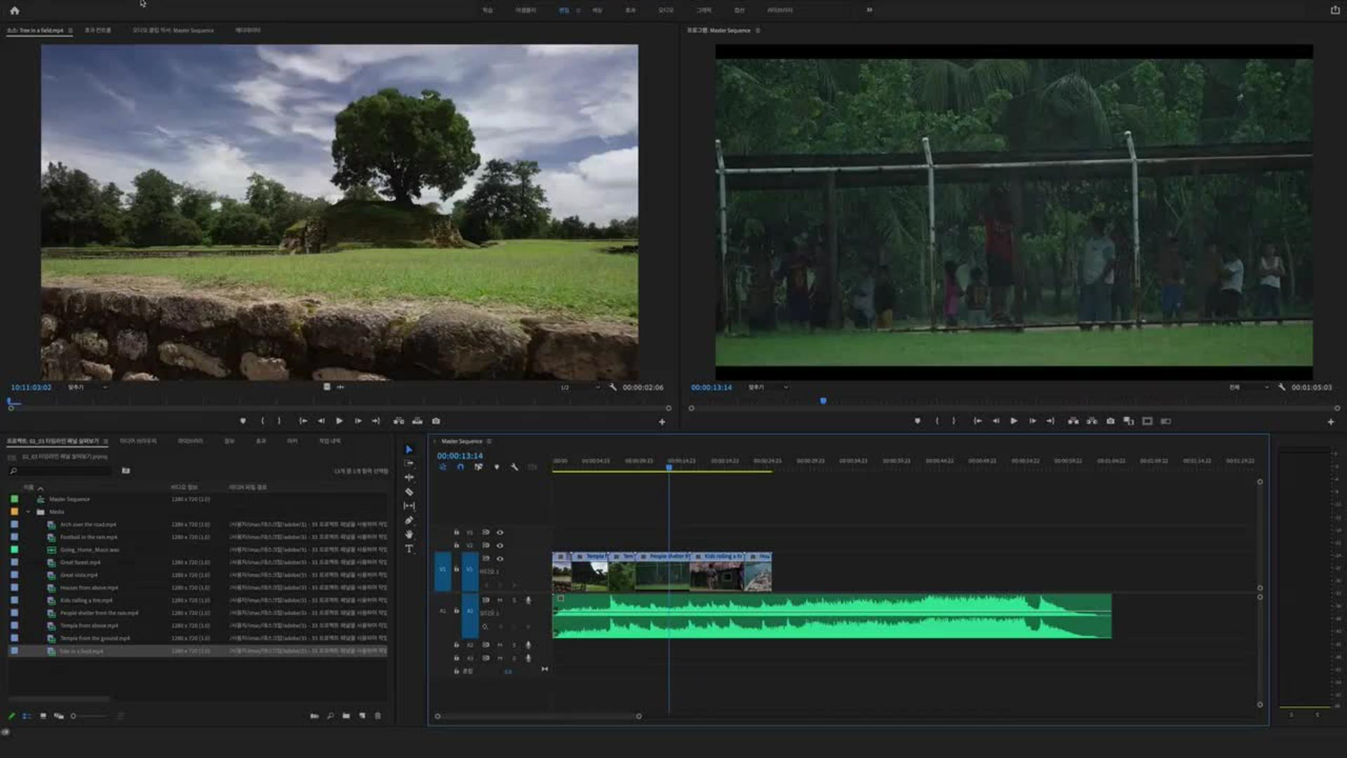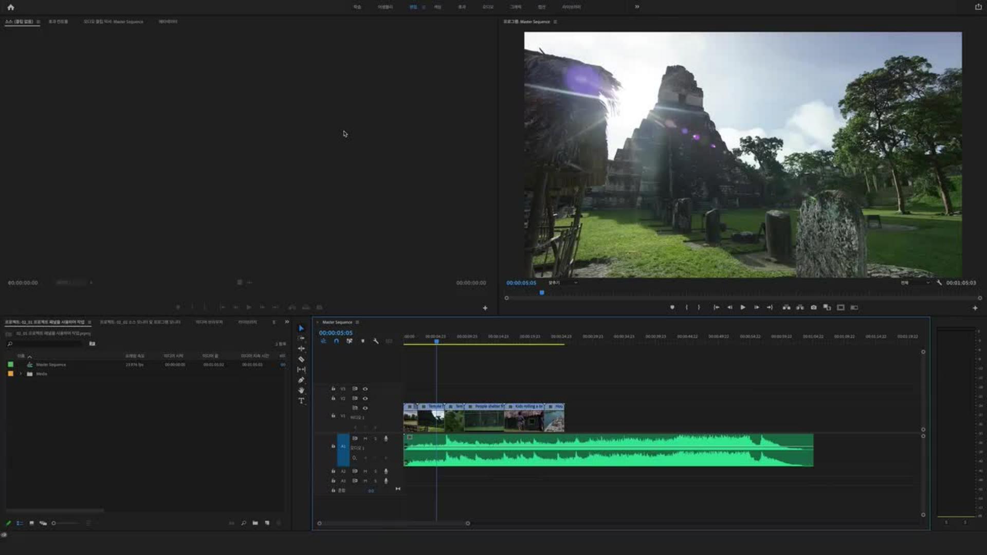 타임라인 패널은 시퀀스를 생성하고 특수 효과를 적용하고 사운드트랙을 변경하는 등 비디오를 창의적으로 작업하여 조합할 수 있는 곳입니다.