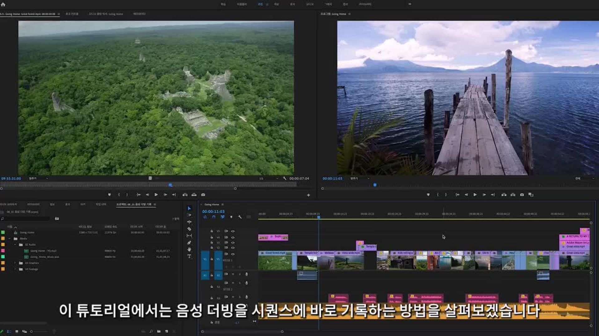 Premiere Pro에서는 시퀀스를 재생하면서 음성 더빙을 시퀀스에 바로 기록할 수 있습니다.