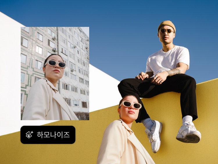 새로운 하모나이즈 기능으로 개체를 빠르고 쉽게 추가하고, 배경을 변경하고, 피사체와 배경을 혼합할 수 있습니다.