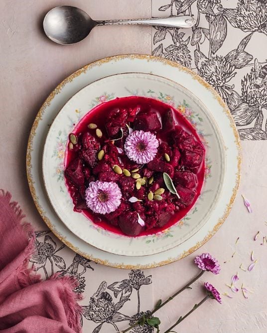 “Layering is a great way to add visual interest,” says Elkady. “For example, with food, you can layer a plate over another plate or put a dish on a tray. “This creates depth in the image and helps the scene look natural.” Cutting boards, hand towels, sheets of coloured paper or vintage books and magazines can all make wonderful flat lay background layers.