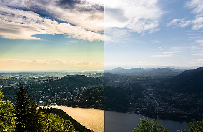 Vignetting: Reducing an image’s brightness along the borders. Often, this effect draws the eye to a brighter central part of the image and can make the image look like it’s viewed through a hole or telescope.