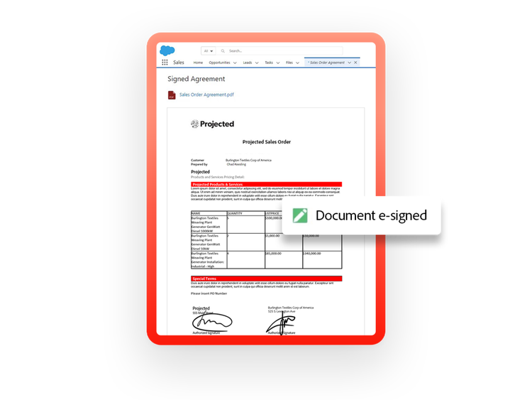 Con Acrobat Sign totalmente integrado en Salesforce, tu equipo y tus clientes pueden ver y firmar de manera electrónica los documentos sin complicaciones, estén donde estén.