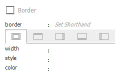 Click the icon at the top of the Properties pane to skip to the border section. The border properties are grouped as a tabbed panel (see Figure 22). Setting the values in the first tab applies the same border to each side of the element. The other tabs set individual borders on the top , right , bottom , and left .