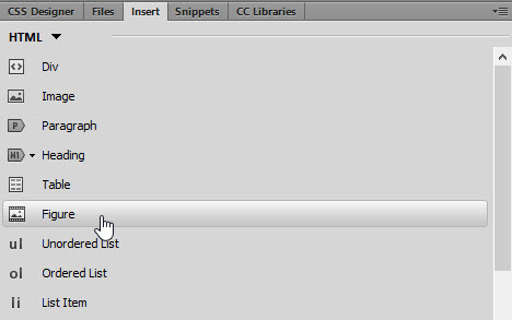 Open the Insert panel, and click Figure in the HTML category (see Figure 7).