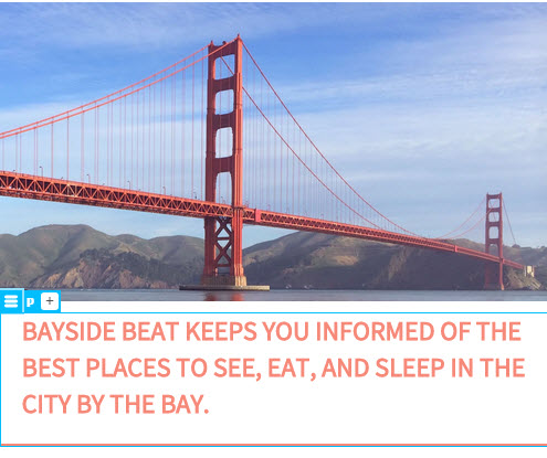 The gap between the top of the text and the image of the Golden Gate Bridge is too big. Use the margin visual tool to reset the top margin to 10px.