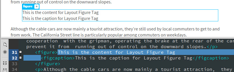 Select After from the Position Assist Dialog to insert a < figure> element after the selected paragraph. The new element has a < figcaption> nested inside. Both contain placeholder text (see Figure 8).