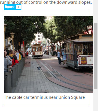 Select the image of the cable car in Live View, and press the up arrow once. This moves the selection up the HTML hierarchy to select the parent < figure> element.