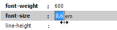 Click once to the right of font-size , and select em as the unit of measurement. As you discovered in part 4, Dreamweaver always sets the value to 0, so the text disappears.