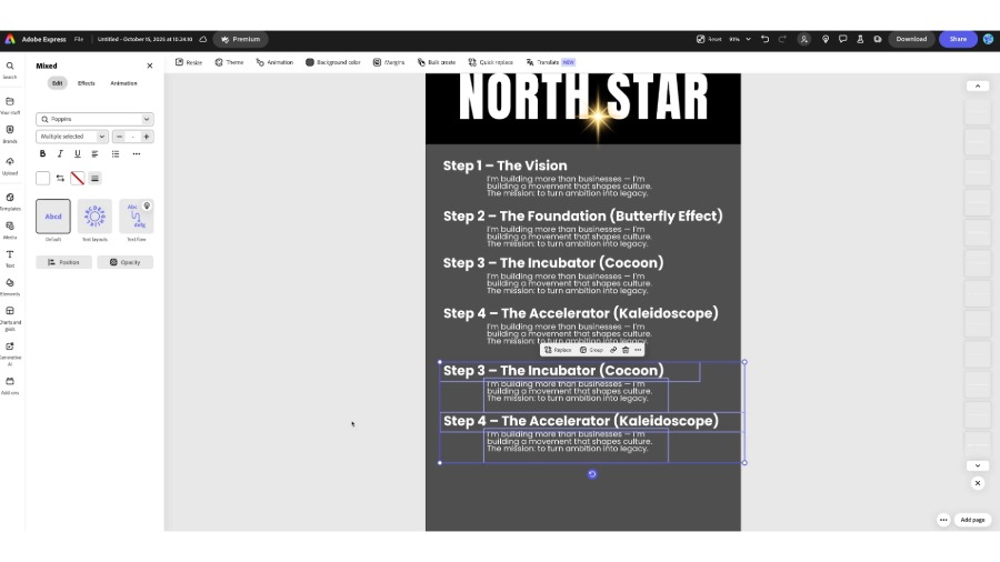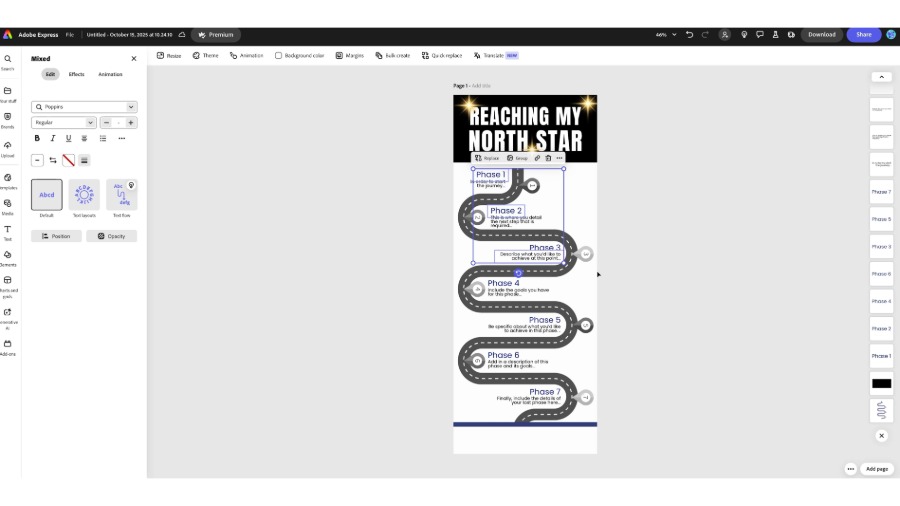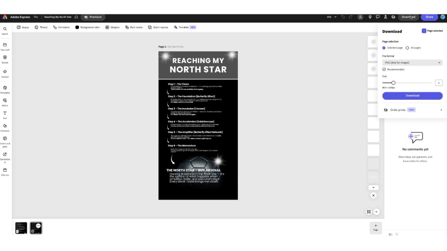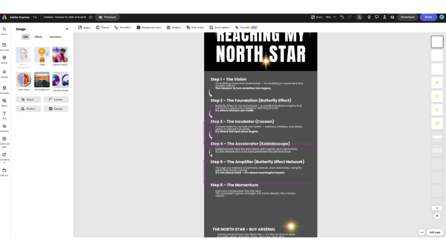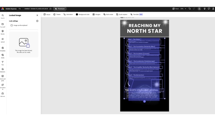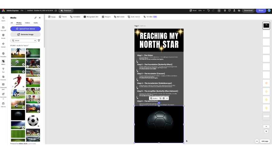 In this tutorial, you can see how Elfried Samba designed his own North Star poster in Adobe Express: a visual reminder of the dream that drives him, something he can look at daily to stay focused on who he’s becoming.
