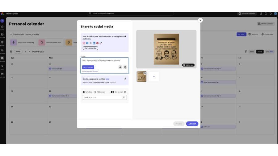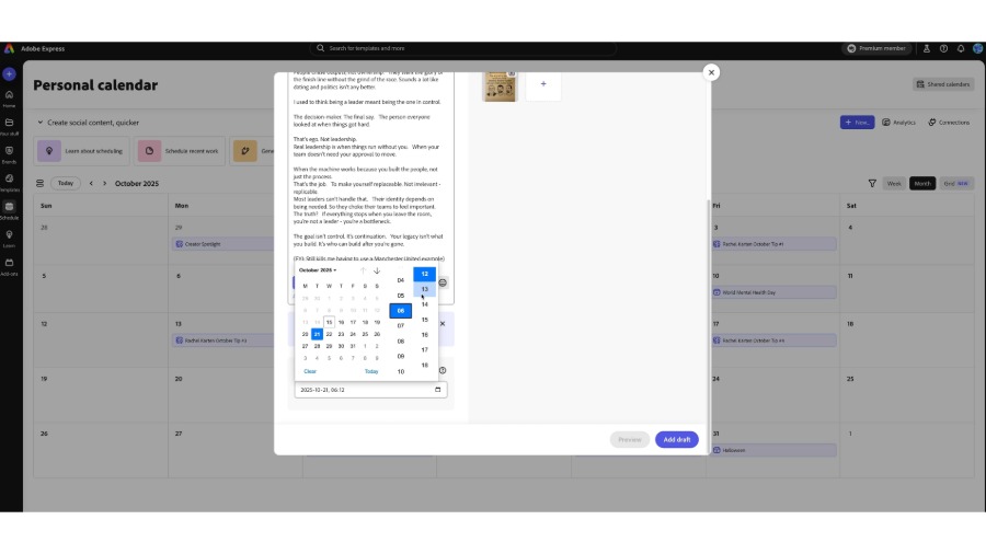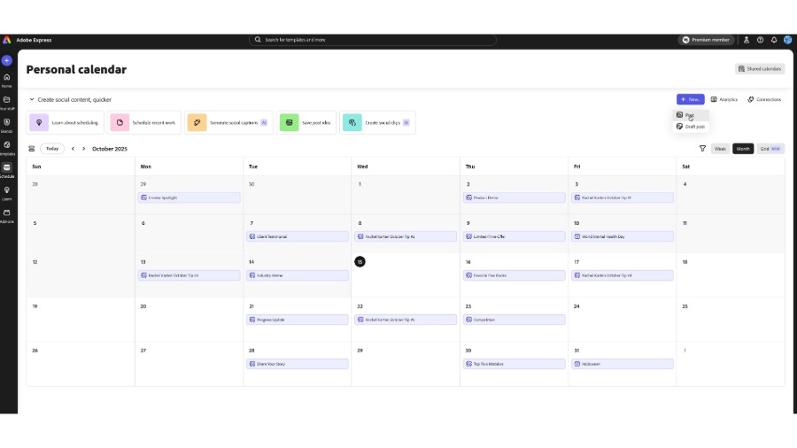 In this tutorial, you can see how Elfried Samba uses Content Scheduler in Adobe Express to plan and track his social posts. It’s a simple way to turn creative ideas into a consistent content rhythm.