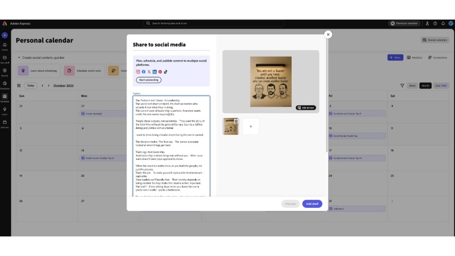 Elfried often writes longer, thought-led captions for platforms like LinkedIn, and Express handles these extended posts seamlessly.