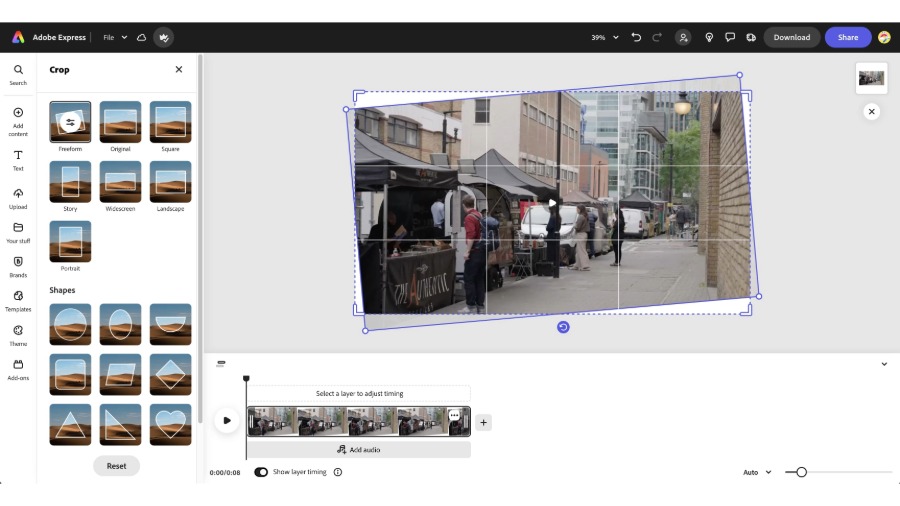 Use the Freeform controls to rotate your video and correct any uneven angles until everything feels level and intentional.
