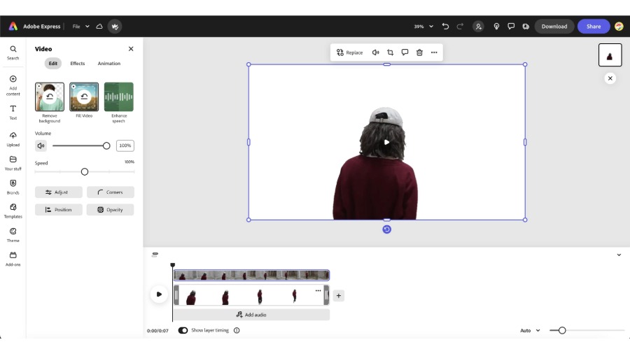 In one click, Adobe Express automatically isolates your subject—no masking or green screen required.