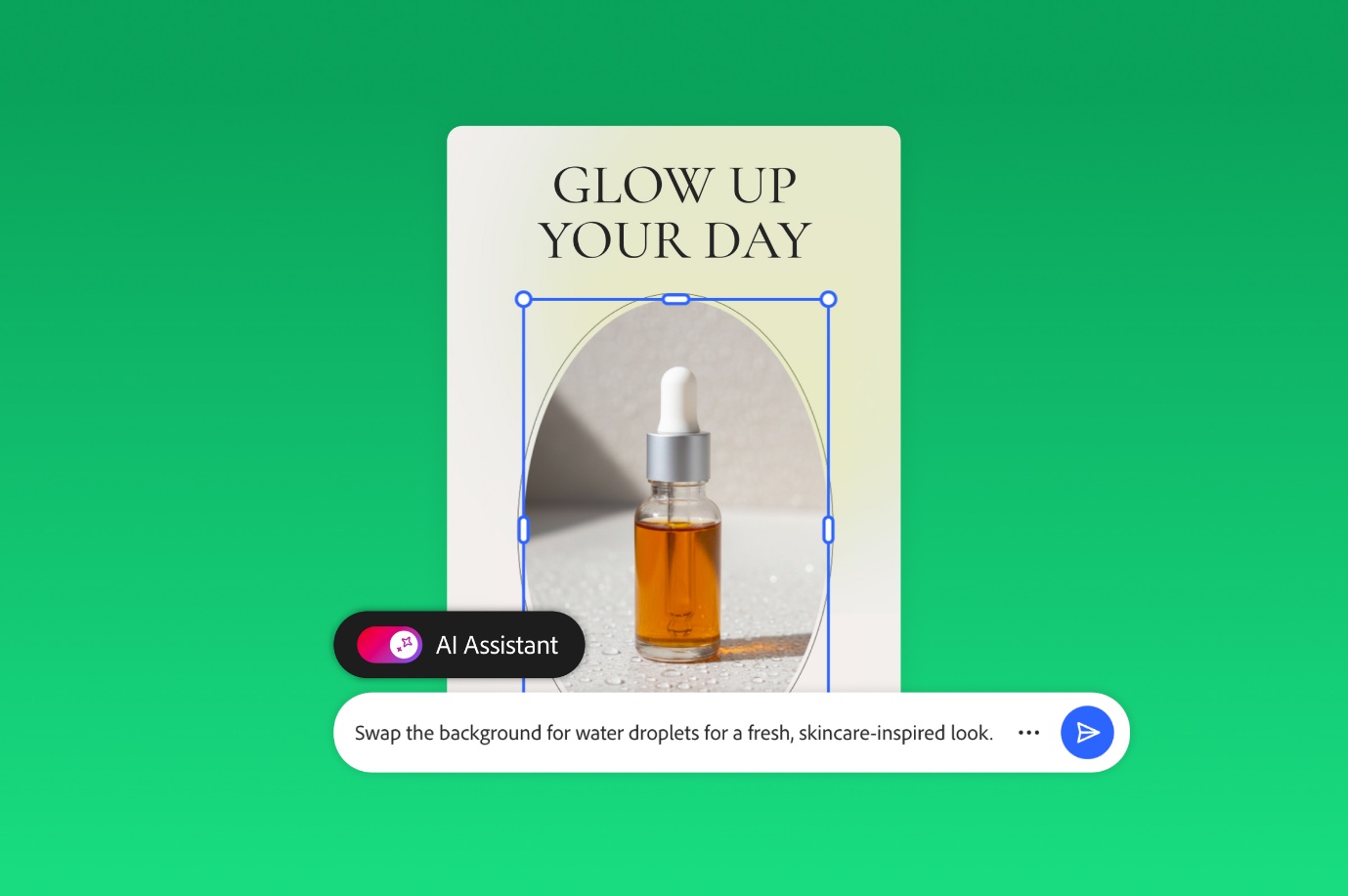 “Swap the background for water droplets for a fresh, skincare-inspired look.”