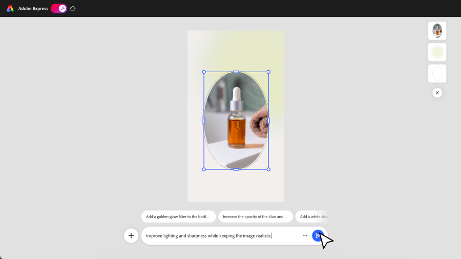This tutorial will show you how to use the new Adobe Express AI Assistant to elevate any image into a studio-quality shot. Make major image transformations — like cleaning up distractions, refining lighting and color, replacing a cluttered background, and more — all in just a few prompts.