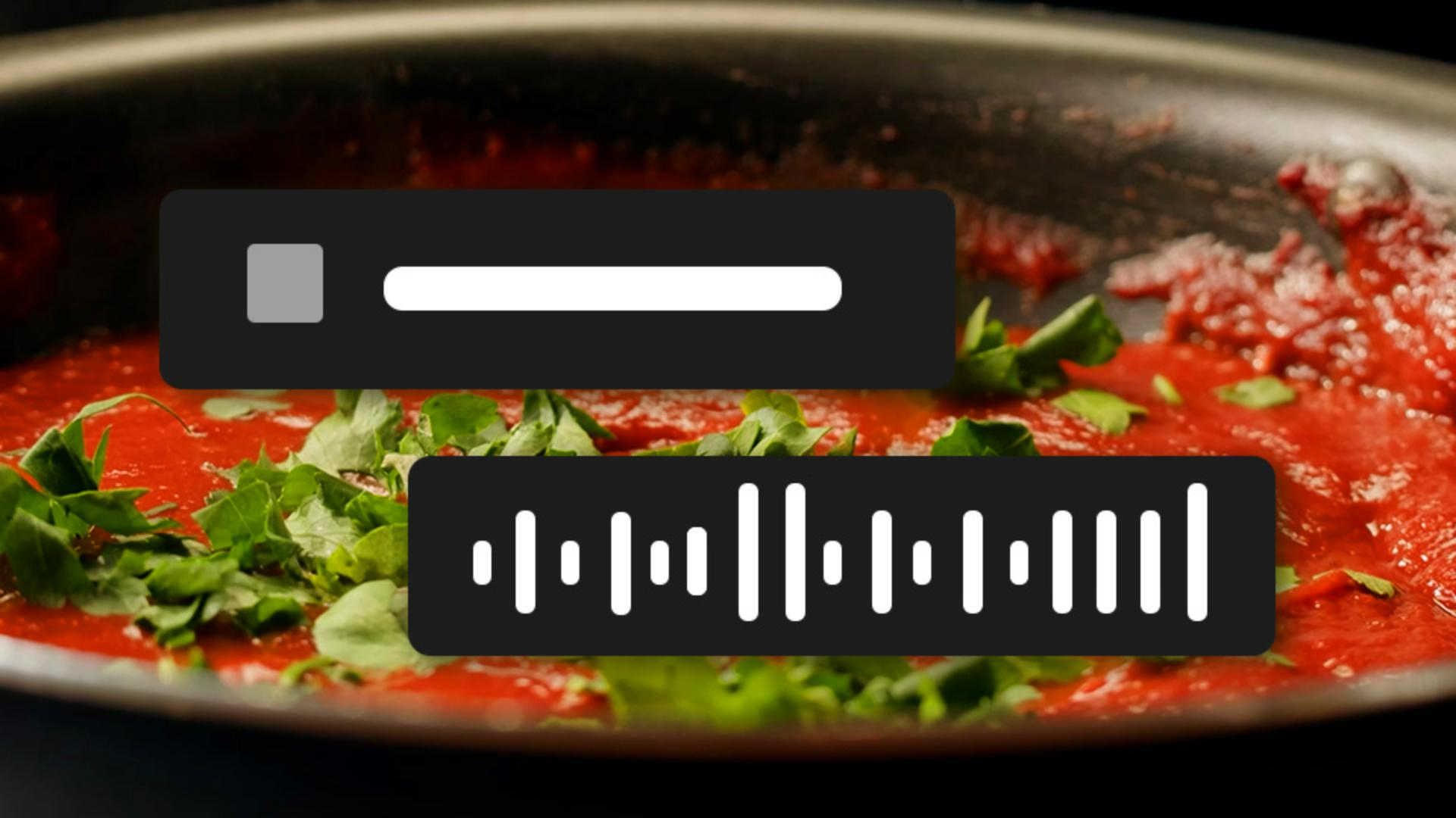 Type a simple prompt like “pasta sauce sizzling” or record your voice to guide the sound. Choose your favorite variation and time it to your video.